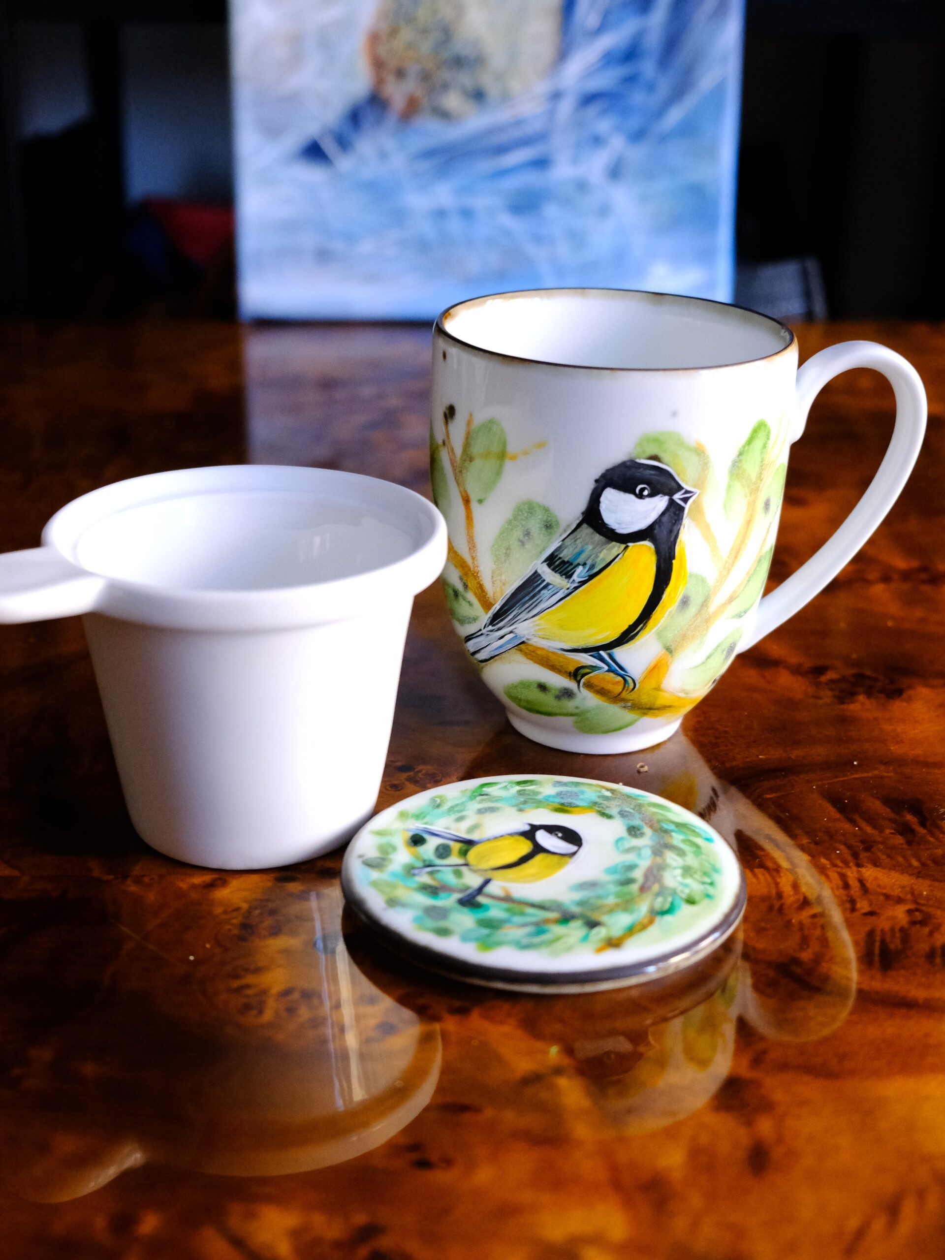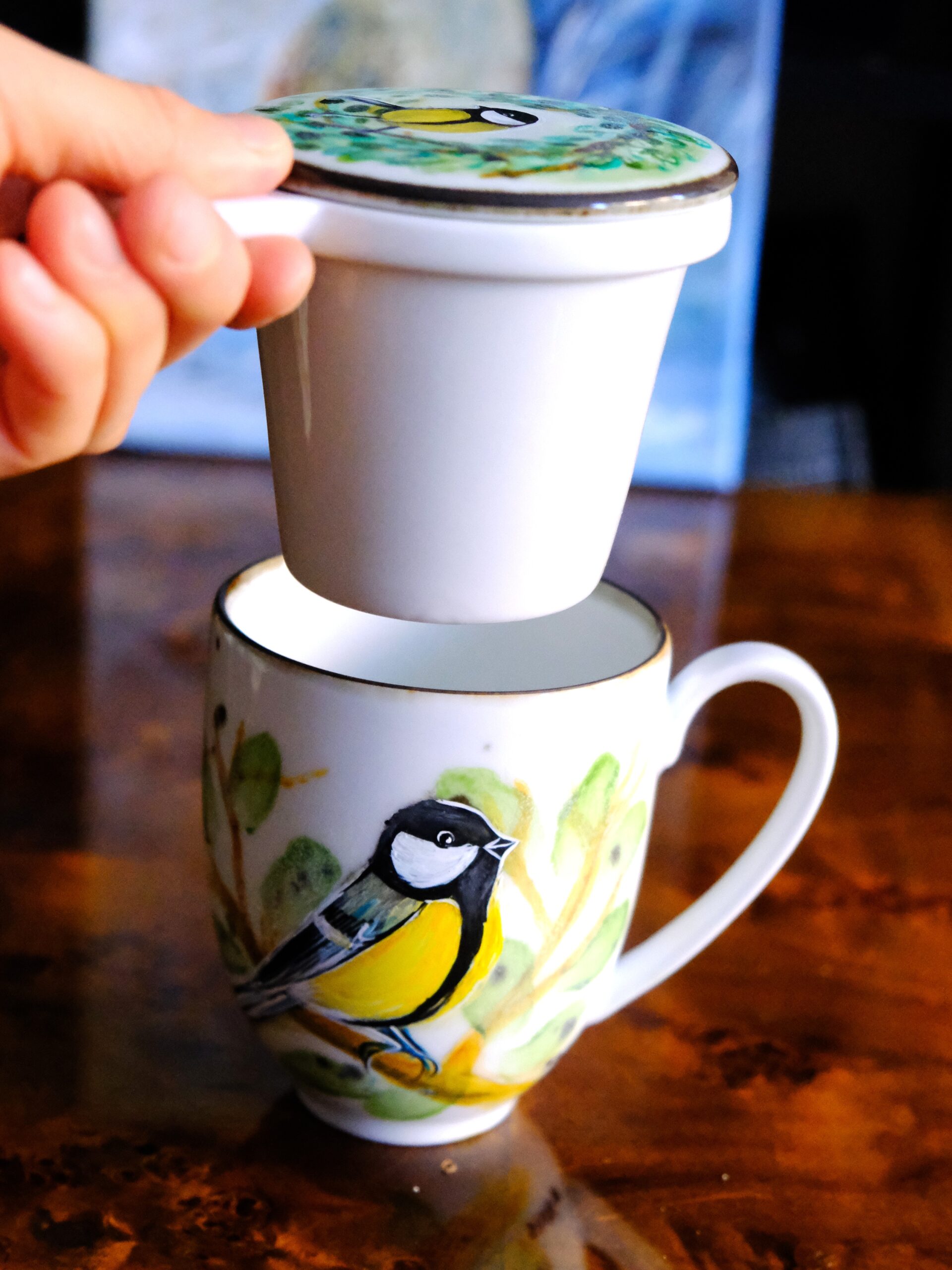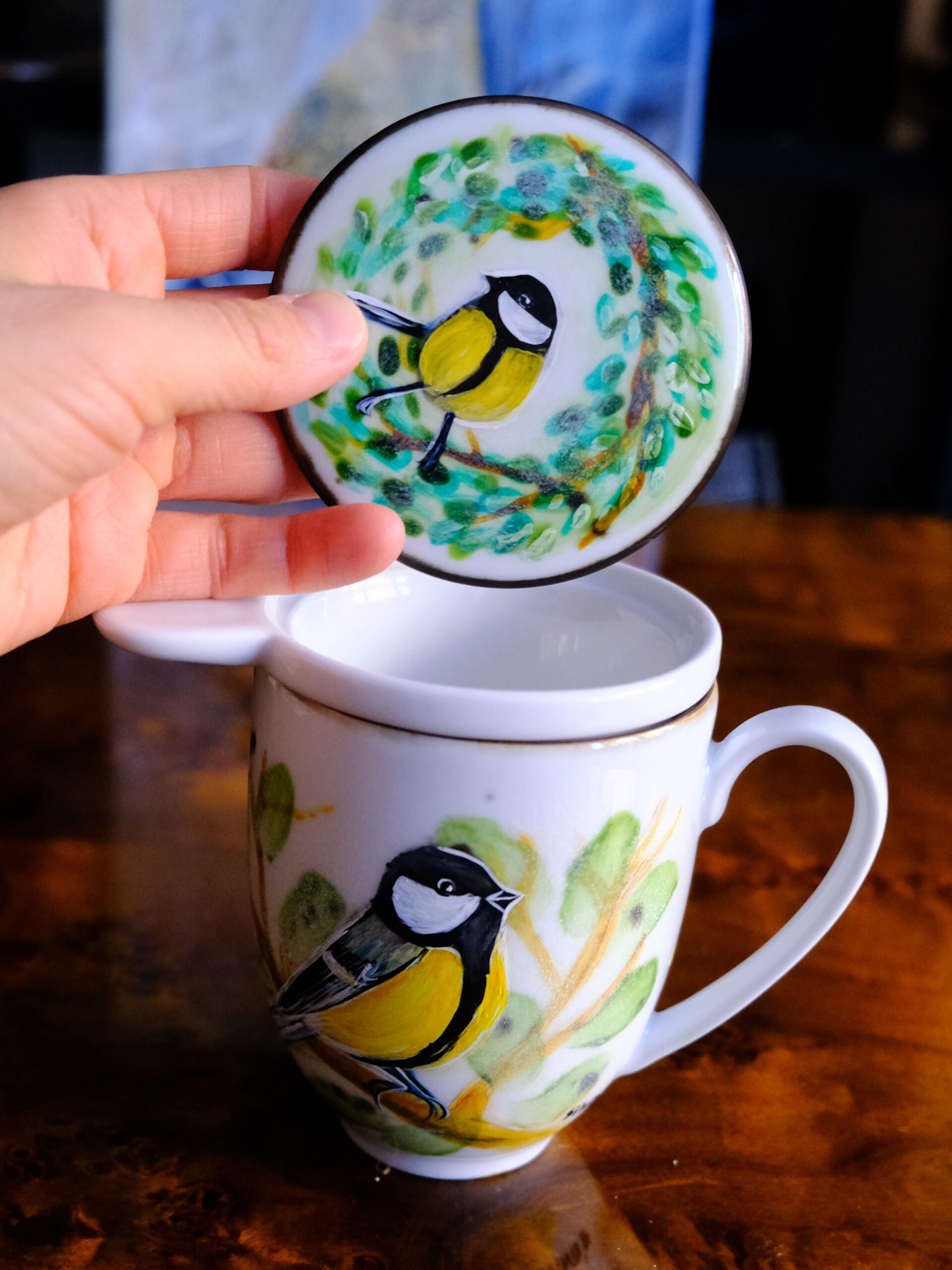 Ręcznie malowane kubki z zaparzaczem pomalowałam z myślą o tych, którzy wierzą, że sposób parzenia herbaty ma znaczenie, a naczynie, w którym ją pijemy, wpływa na jej smak.